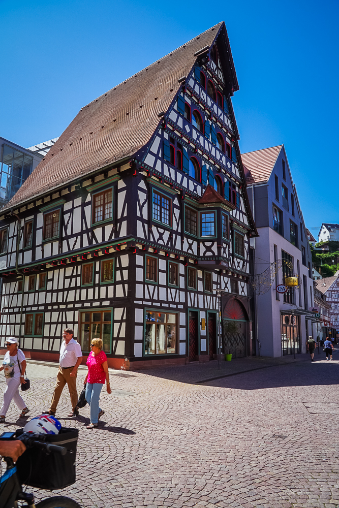 Nach dem Mittagessen im Brauhaus Schönbuch, einer ehemaligen Turnhalle am Ufer der Nagold, besuchten die Geschichtsinteressierten die Altstadt von Calw mit imposanten Fachwerkhäusern und prächtigen Bürgervillen, die vom einstigen Reichtum der Tuchmacher und Flößer zeugen. Berühmt waren europaweit die Calwer Tuche, die bis in die 1990er Jahre produziert wurden; das Fabrikgebäude steht noch am Ufer der Nagold. Noch im Betrieb ist die Turmuhrenfabrik der Firma Perrot. Aus ihrer Werkstatt stammt die größte Turmuhr der Welt: sie befindet sich in Mekka/Saudi-Arabien, hat ein Gewicht von 60 Tonnen und besitzt ein beleuchtbares Ziffernblatt von 43 Metern Durchmesser.