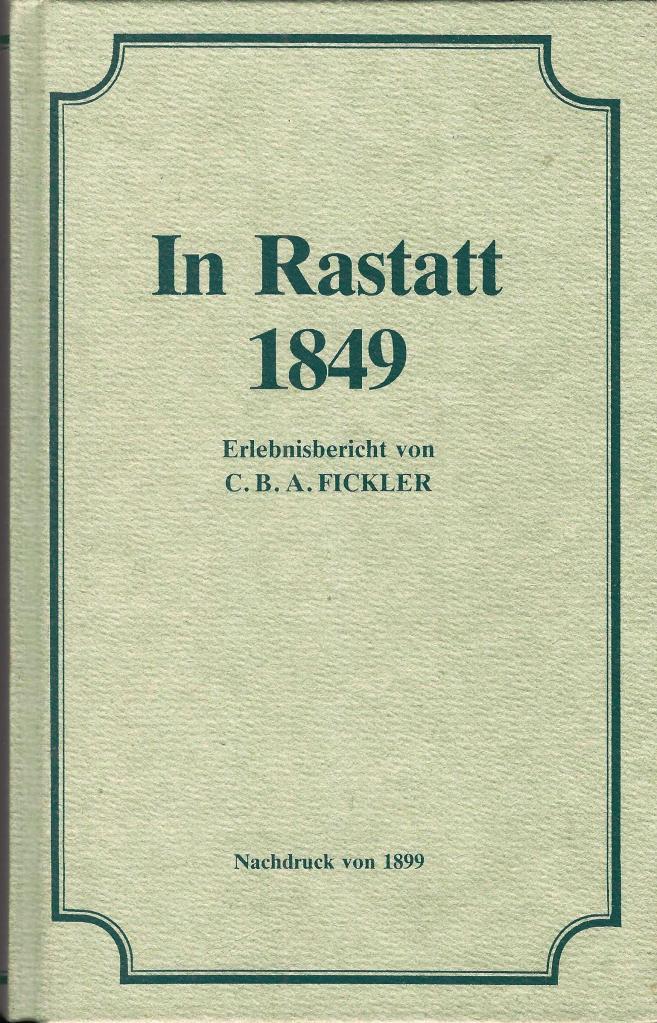 Erlebnisbericht des Professors am Rastatter Lyzeum C.B.A. Fickler über die Rastatter Revolutionsereignisse von 1849; erstmals erschienen 1853,2. Auflage 1899