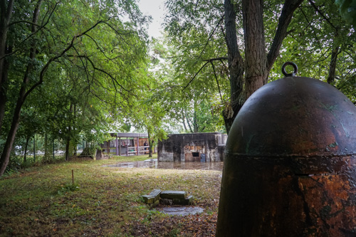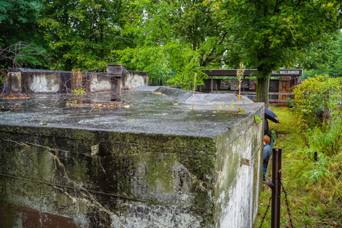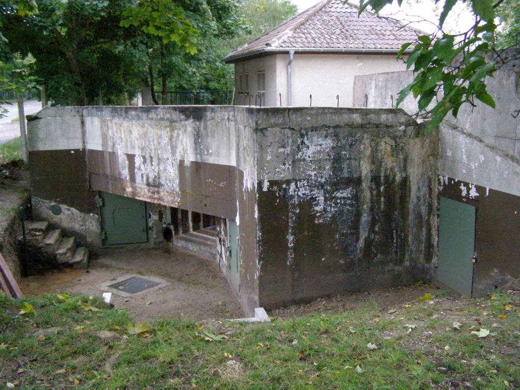 Der Bunker selbst war durch zwei Stahltüren (1) gesichert, über die man in eine rechte und eine linke Gasschleuse (2) gelangte. Die Eingänge wurden durch eine Eingangsverteidigung (3) gesichert. Hinter dieser mit „Abtreppung“ versehenen Scharte verbarg sich ein Maschinengewehr. Im Gruppenraum (4), hinter der Eingangsverteidigung, war eine Stahlschartenplatte (5) mit den Maßen 140 x 75 x 3 cm eingebaut.