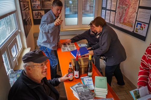 Der Autor Hervouet beglückwünschte zunächst den Historischen Verein zu den Exponaten, die im ehemaligen Wachhaus zusammengetragen worden sind. Am Bunker selbst zeigte er sich von den Originalme-tallteilen vor den Bunkeröffnungen angetan, die meistens bei anderen Regelbauten, so im Saarland, verschwunden sind.