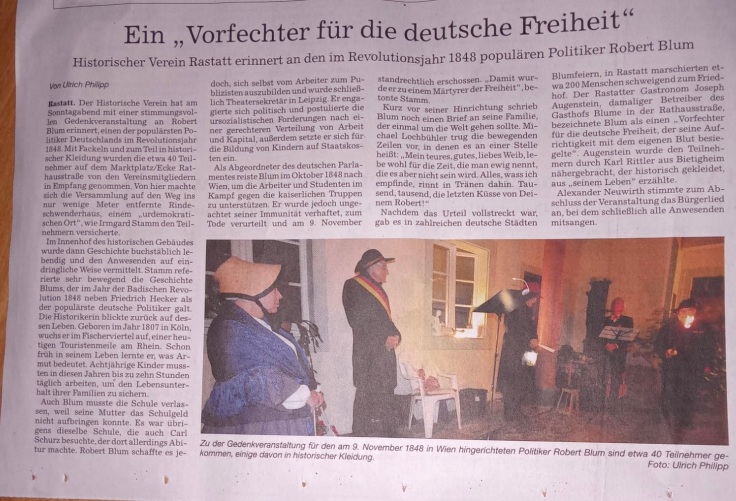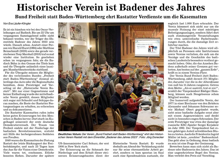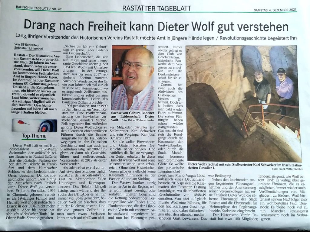 Zurück nach Rastatt ging es über den Dobel und die Gemeinde Loffenau, die bis zur kommunalen Gebietsreform zum Kreis Calw und seit 1973 zum Landkreis Rastatt gehört. Auf dem Weg nach Gernsbach wurde auch daran erinnert, dass in den Revolutionskämpfen von 1849 die Bundestruppen über dieses neutrale württembergische Gebiet in das Murgtal einrückten und die Freischaren aus Gernsbach vertrieben, womit das Ende der badisch-pfälzischen Revolution von 1848/49 besiegelt war.