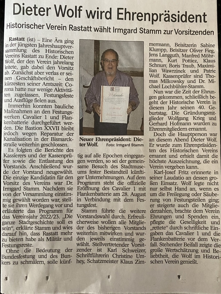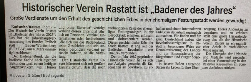 Anlage: Foto vom Besuch der Denkmal‘schätze‘ mit dem 1. Vorsitzenden des Historischen Vereins Rastatt, Dieter Wolf