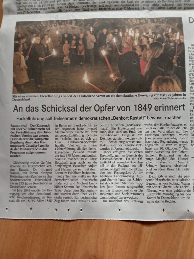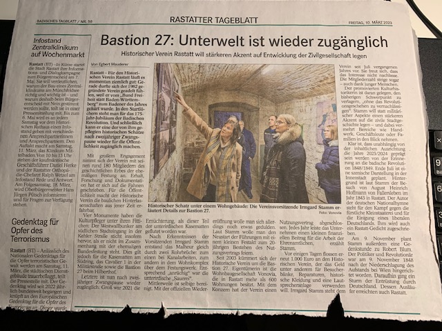 Rastatt(wo). Das Festungswerk Bastion 27 an der Ecke Am Ludwigsring/Bahnhofstraße atmet Geschichte und wird im Jahr von vielen hundert historisch Interessierter besucht. Durch Führungen der Stadt Rastatt und des Historischen Vereins macht man Festungs- und Revolutionsgeschichte gerade von 1849 lebendig.